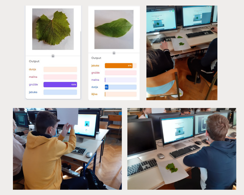 Učenici 8.a i 8 .b razrednog odjela, učili su o umjetnoj inteligenciji. Umjetna inteligencija je područje računalne znanosti koje se bavi razvojem inteligentnih alata koje reagiraju i uče kao ljudi. Korištenjem platforme za treniranje modela umjetne inteligencije,  učenici su izradili model pomoću kojeg su naučili računalo kako  na osnovu slike prepoznati različite biljke iz naše okolice. Ove jeseni učenici su prikupljali uzorke listova različitih biljnih vrsta te izradili zajedničku kolekciju fotografija, koju su koristili za treniranje modela. U sljedećoj fazi korištenjem  kamere i  uzoraka, testirali smo model.