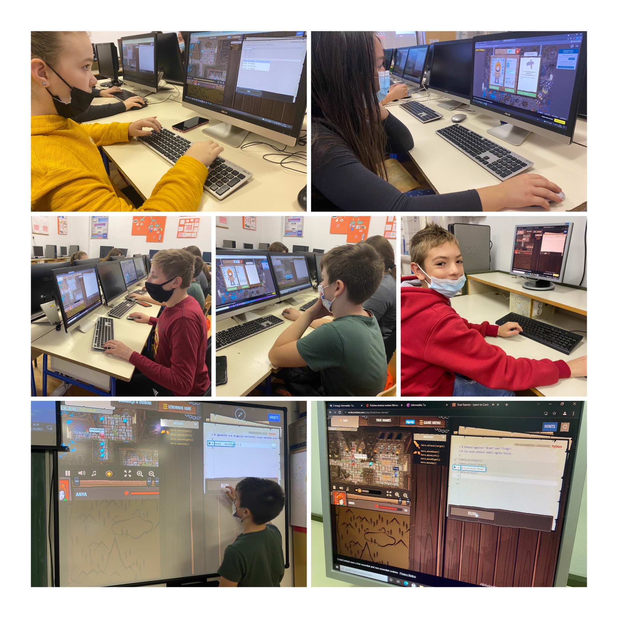 Učenicima 6.a, 6.b, 6.c i 7.a razrednog odjela na satu Informatike, približio se zanimljivi svijet programiranja kroz obrazovnu video igru za učenje programskog jezika. Video igra zahtjeva rješavanje problema logičkim razmišljanjem te upotrebom naredbi programskog jezika Python. Učenici su s lakoćom savladali korake u popularnoj igrici CodeCombat, a pritom se i zabavili. Aktivnosti je osmislila te s učenicima provela učiteljica Ivana Rožić Dubravčić. U aktivnostima je sudjelovalo ukupno 45 učenika.