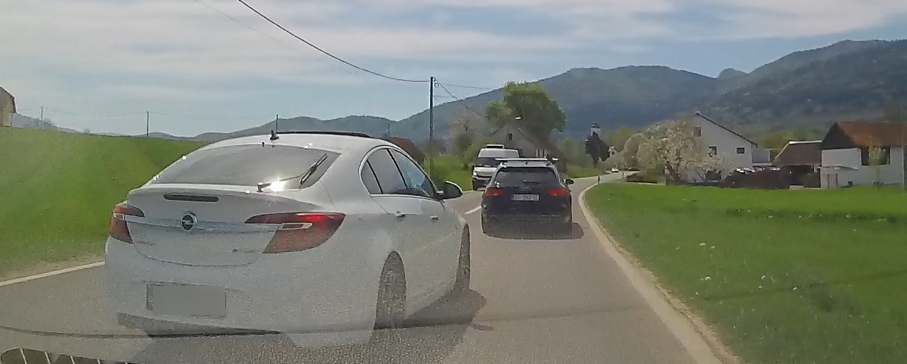 Tako smo prije nekoliko dana u mjestu Ličko Lešće snimili mladoga divljaka za volanom Opel Insignije gospićkih tablica. Na fotografijama se vidi kako pretječe jedno vozilo a iz suprotnog pravca nailazi kombi. Zbog loše procjene ali i očite bahatosti ne uspijeva preteći i drugo vozilo ispred sebe već se pokušava vratiti u prometnu traku ali na način da izgurava sa ceste vozilo koje je pretekao. Kombi koji mu dolazi u susret mora naglim kočenjem izbjegavati sudar sa mladim divljakom i “bježati” nemalo pa izvan prometne trake.