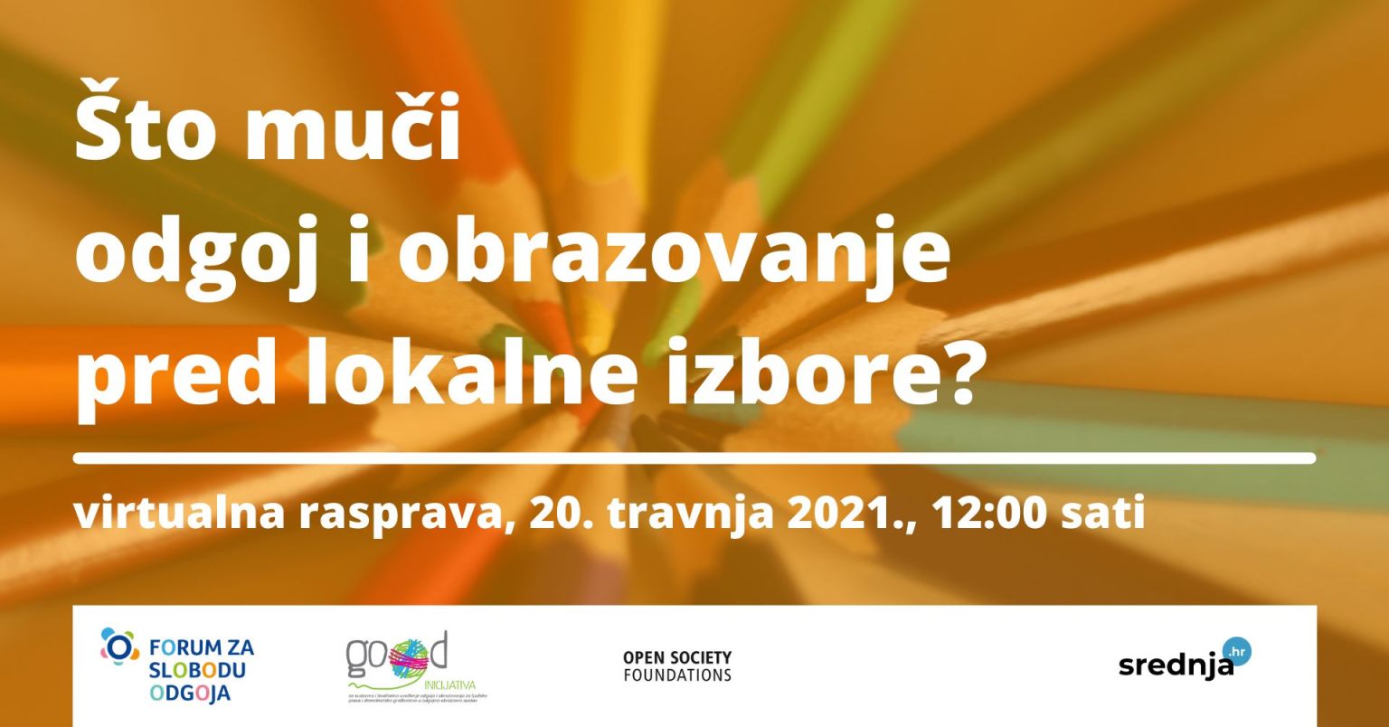 Forum za slobodu odgoja i GOOD inicijativa za sustavno i kvalitetno uvođenje odgoja i obrazovanja za ljudska prava i demokratsko građanstvo u odgojno-obrazovni sustav, u medijskoj suradnji s portalom srednja.hr organiziraju panel diskusiju na temu “Što muči odgoj i obrazovanje pred lokalne izbore?”.