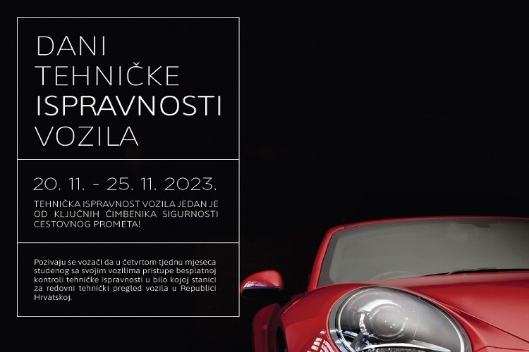 Pod pokroviteljstvom Nacionalnog plana sigurnosti cestovnog prometa Republike Hrvatske, u suradnji s Hrvatskim autoklubom i Centrom za vozila Hrvatske, u razdoblju od 20. do 25. studenog provest će se preventivno-sigurnosna akcija nadzora tehničke ispravnosti vozila pod nazivom “Dani tehničke ispravnosti vozila”.