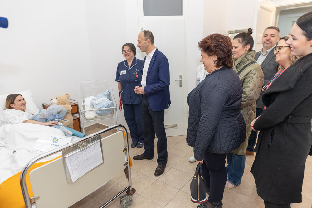 GOSPIĆ – Prva beba rođena u Ličko-senjskoj županiji u 2024. godini je maleni Martin, koga je majka Božena u rodilištu Opće bolnice Gospić rodila 2. siječnja 2024. u 04:31 sati prirodnim putem. Dječak je težak 3500 grama i dug 54 centimetra.Već tradicionalno, prvo novorođenče i njegovu majku darivala je Ličko-senjska županija. Župan Ernest Petry prigodne poklone za malenog Martina i njegovu majku Boženu uručio je u prisustvu ravnateljice Opće bolnice Gospić dr. Sandre Čubelić, dr. Mirjane Pećine i ostalih zdravstvenih djelatnika. Uz cvijeće za majku, župan je za dječaka uručio plišanog medvjedića kao i ček u vrijednosti 500 eura.
