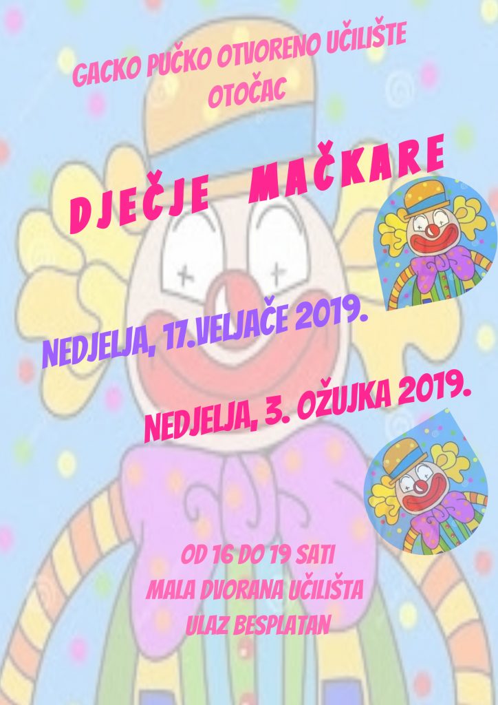 OTOČAC – Gacko pučko otvoreno učilište Otočac i ove godine u vrijeme poklada organizira Dječje mačkare. Dva maskirana bala za djecu svih uzrasta održat će se u maloj dvorani na katu Gackog pučkog otvorenog učilišta uz zabavni program i igre. Dječje mačkare održavat će se nedjeljama – 17. veljače i 3. ožujka – od 16 do 19 sati.