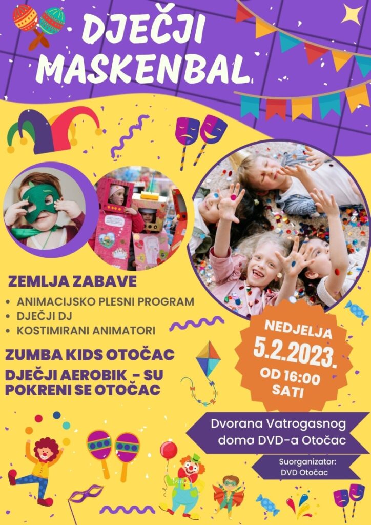 OTOČAC – U nedjelju, 5. veljače Turistička zajednica Grada Otočca u suradnji s DVD-om Otočac organizira dječji maskenbal. Maskenbal će se održati u dvorani Vatrogasnog doma DVD-a Otočac s početkom u 16:00 sati. Za zabavu je zadužena ekipa iz “Zemlja Zabave” s animacijsko plesnim programom, kostimiranim animatorima te Dj-om. Uz njih svoje plesno ritmičke koreografije pokazat će najmlađi sugrađani, članovi Zumba kids Otočac grupe i sekcije dječjeg aerobika Sportske udruge “Pokreni se” Otočac. Ulaz je svima besplatan.