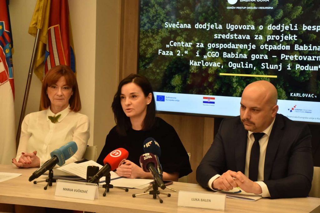 Direktor Fonda za zaštitu okoliša i energetsku učinkovitost Luka Balen pojasnio je kako će Centar za gospodarenje otpadom Babina gora služiti organiziranom i gospodarski usmjerenom načinu zbrinjavanja miješanog komunalnog otpada s područja Karlovačke županije, sjeveroistočnog dijela Ličko-senjske županije i zapadnog dijela Sisačko-moslavačke županije. “Financiranje za 4 pretovarne stanice na lokacijama u Karlovcu, Slunju, Ogulinu i Otočcu osigurano je kroz Nacionalni plan oporavka i otpornosti. Projekt pretovarnih stanica sufinanciramo bespovratnim sredstvima EU-a u iznosu od 4,8 milijuna eura, dok ukupna vrijednost projekta izgradnje pretovarnih stanica iznosi nešto više od 7 milijuna”, kazao je direktor Balen.