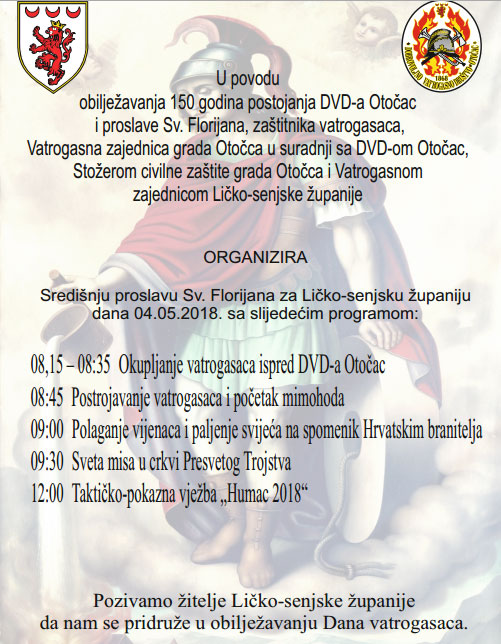 OTOČAC – DVD Otočac obilježava 150 godina postojanja. DVD Otočac jedno je od najstarijih aktivnih društava u Hrvatskoj, a središnja proslava Svetog Florijana, zaštitinika vatrogasaca, biti će ovaj petak, 4. svibnja.