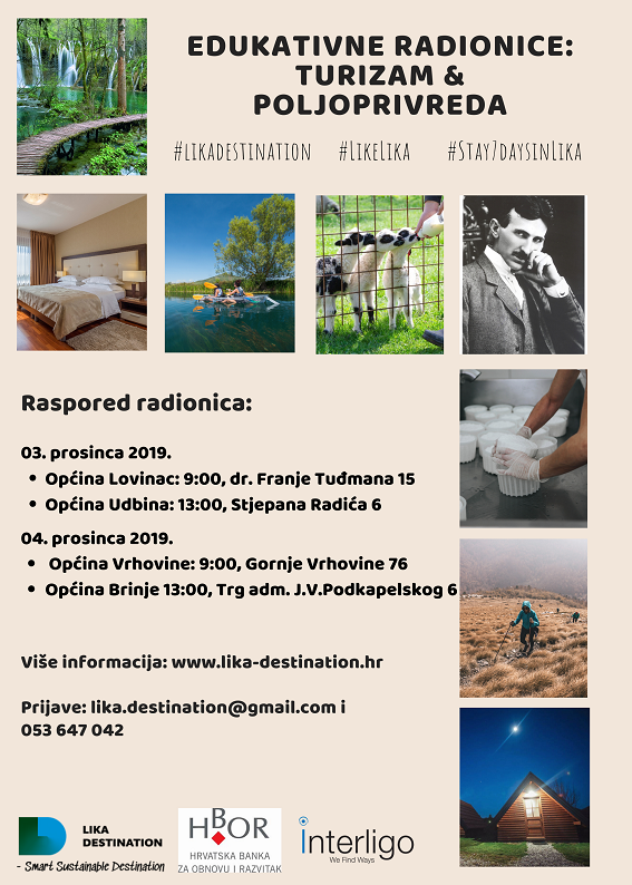 Klaster Lika Destination organizira edukativne radionice za sve koji se žele baviti turizmom i/ili poljoprivredom, koji žele započeti ili unaprijediti svoje poslovanje. Radionice su koncipirane tako da zainteresirani sudionici na jednom mjestu mogu dobiti sve informacije o spomenutim temama.