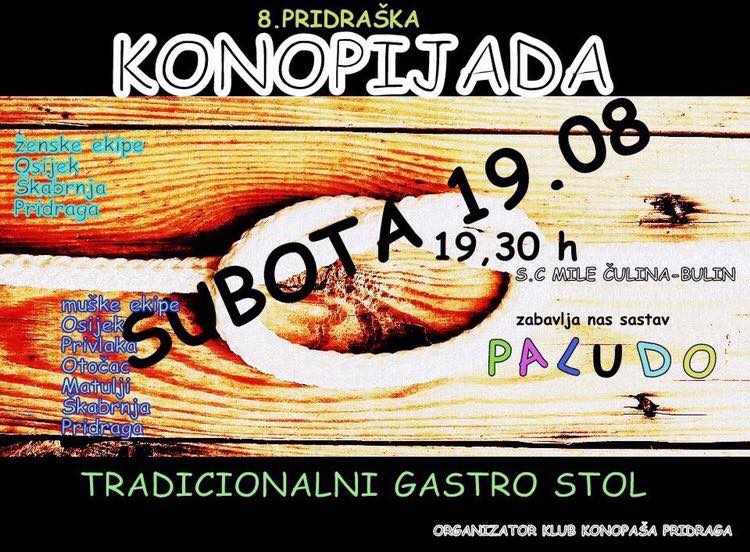 Naši Gačanski konopaši nastavljaju nizati uspjehe. U subotu 19. kolovoza u mjestu Pridraga kod Zadra održala se je tradicionalna 8. pridraška konopijada. Turnir je to u starim tradicijskim sportovima kao što su skok u dalj , bacanje kamena s ramena i povlačenja konopa. Nastupale su najbolje ženske i muške ekipe iz cijele Hrvatske. Gačanski konopaši, u povlačenju konopa, osvojili su 3. mjesto na koje su iznimno ponosni. Ukupan poredak je bio: 1. mjesto ekipa iz Matulja, 2. Mjesto ekipa iz Pridrage, a 3. mjesto Gačanski konopaši. U disciplini kamena s ramena 1. mjesto osvojio je Ante Ladišić dok je na drugoj poziciji bio Tomislav Žubrinić, također iz ekipe Gačanskih konopaša! U disciplini skok s mjesta 1. mjesto osvojio je Tomislav Majetić skočivši 2,40 m!