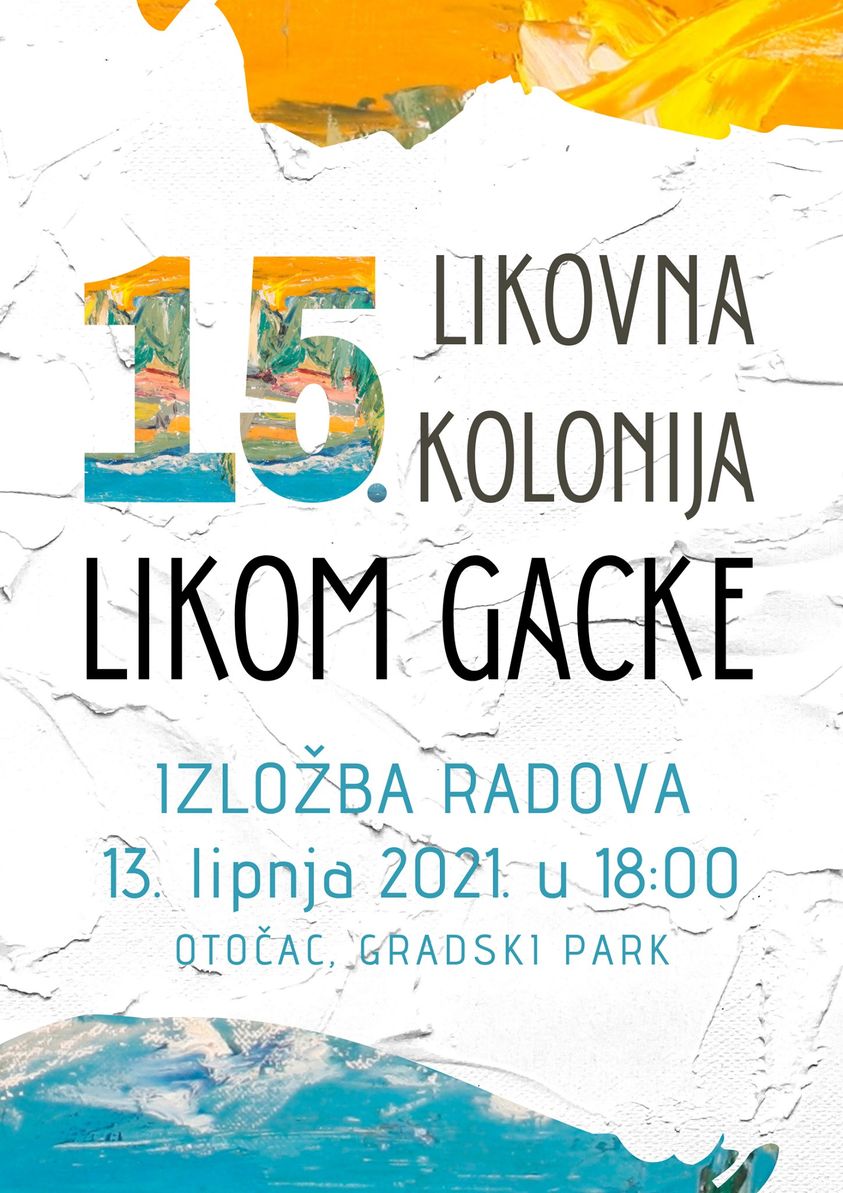 OTOČAC – GPOU Otočac domaćin je 15. likovnoj koloniji LIKOM GACKE koja će se održati od 11. do 13. 6. 2021. i okupiti 15 sudionika – amaterskih i profesionalnih umjetnika iz Hrvatske i Slovenije. Među sudionicima su i članovi dviju udruga – Udruge željezničara slikara Plavo svjetlo iz Zagreba i Likovne udruge Lika iz Gospića.