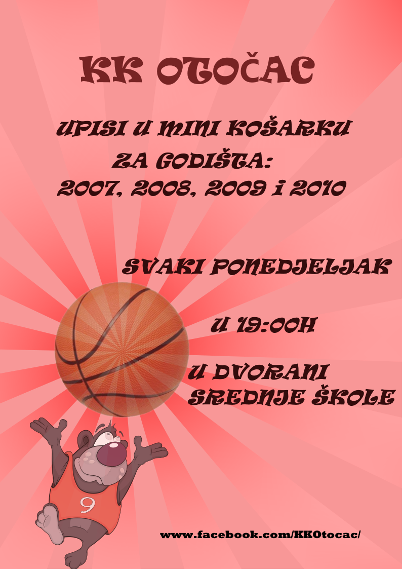 OTOČAC – Košarkaški klub Otočac vrši upise u mini košarku za godišta 2007. – 2010. i to svaki ponedjeljak od 19:00 sati u dvorani Srednje škole Otočac. Više na Facebook stranici KK Otočac.