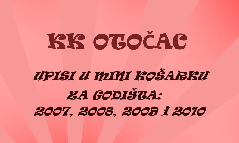 OTOČAC – Košarkaški klub Otočac vrši upise u mini košarku za godišta 2007. – 2010. i to svaki ponedjeljak od 19:00 sati u dvorani Srednje škole Otočac. Više na Facebook stranici KK Otočac.