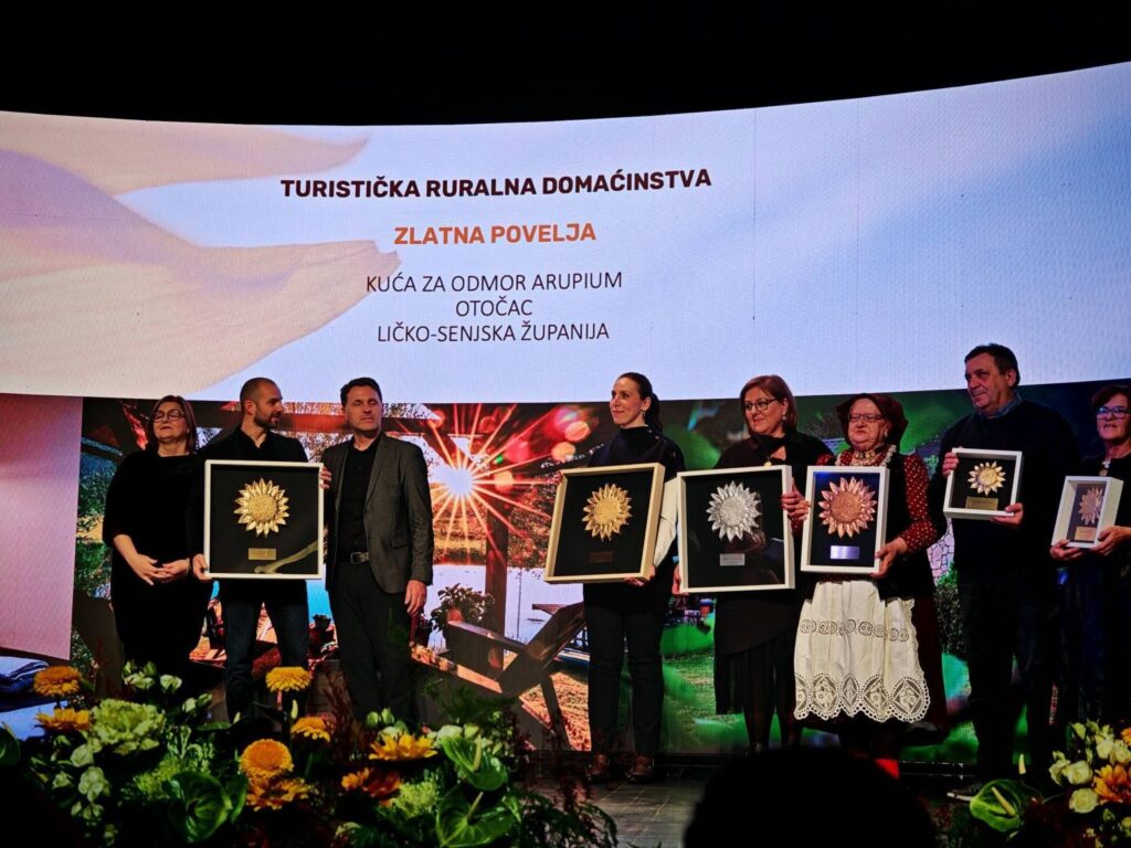 Hrvatska udruga za turizam i ruralni razvoj “Klub članova selo”, jučer je u Bjelovaru dodijeljivala nacionalne nagrade Suncokret ruralnoga turizma – The Sunflower Award. Priznanje Suncokret ruralnog turizma Hrvatske projekt je u sklopu kojeg se jednom godišnje ocjenjuju i predstavljaju tradicijski sadržaji, čuva izvornost te povezuju sudionici ruralnoga turizma. S područja Grada Otočca osvojene su dvije nagrade: Zlatni suncokret u kategoriji turistička ruralna domaćinstva osvojila je Kuća za odmor Arupium, Arupium Resort, dok je srebrni suncokret osvojilo Velebitsko utočište za mlade medvjede Kuterevo u kategoriji pristupačni turizam i jačanje ruralne zajednice.
