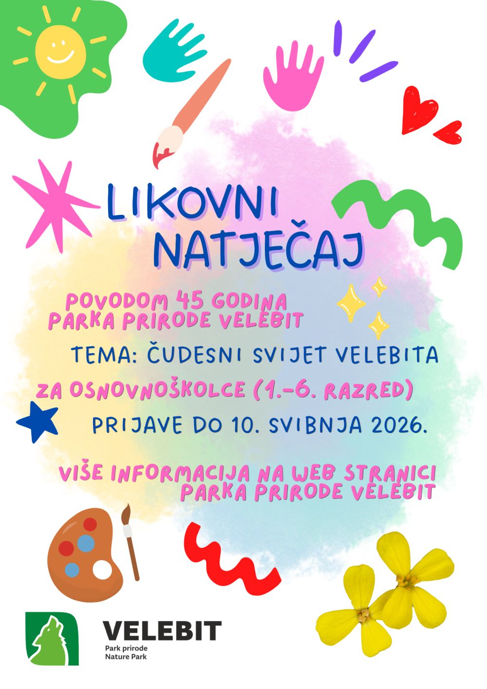 Javna ustanova „Park prirode Velebit“ obilježava 45 godina postojanja. Tim povodom pozivaju se učenici od 1. do 6. razreda osnovnih škola da se uključe u likovni natječaj, a čiji je cilj potaknuti djecu na istraživanje prirode kroz umjetnički izraz i dodatno ih povezati s jedinstvenim ekosustavom Velebita.