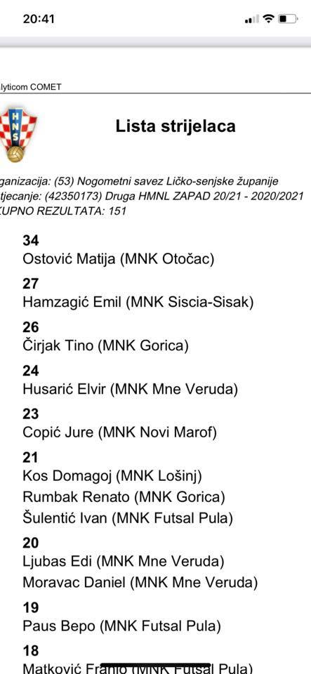 Još jedna lijepa vijest stiže iz svijeta sporta, točnije iz 2. Hrvatske malonogometne lige Zapad. Naime, otočanin Matija Ostović proglašen je najboljim strijelcem 2. HMNL Zapad sa postignutih 34 gola. Matija je također i drugi najbolji igrač lige po izboru kapetana svih klubova. Čestitke Matiji na ovom izvrsnom postigniću.