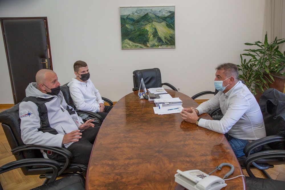 GOSPIĆ – Subota je i dok su još mnogi vjerojatno odmarali od proteklog tjedna u posteljama, županov radni dan je započeo u 6,30 h. U svom uredu primio je mladu boksačku nadu, Boksačkog kluba Gospić, Andriju Tomića i njegovog trenera i predsjednika Boksačkog kluba Gospić, Antonija Tomića. Povod prijema je današnji prvi nastup Andrije Tomića i izlazak na natjecanje u organizaciji Hrvatskog boksačkog saveza u Prvoj hrvatskoj boksačkoj ligi. Andrija i njegov trener jutros su krenuli put Zagreba na ovo prestižno natjecanje. Milinović im je kao dokazani sportaš ( i sam je majstor borilačkih vještina, karate) zaželio sretan put i puno uspjeha na današnjem natjecanju.