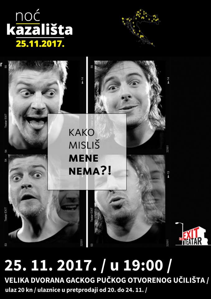 OTOČAC – Gacko pučko otvoreno učilište Otočac i ove se godine pridružuje obilježavanju Noći kazališta. Ove godine gostovati će Teatar Exit s predstavom “Kako misliš mene nema?!”, a ulaznice će biti prodavane po promotivnoj cijeni od 20 kuna.