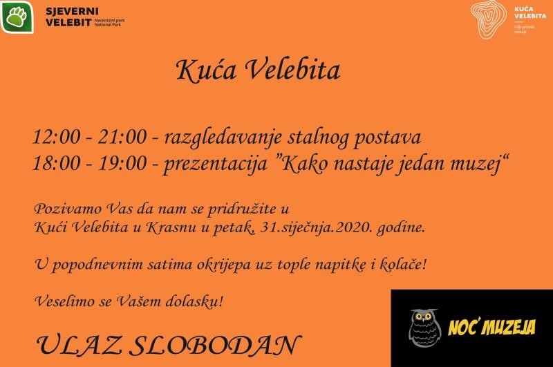 I ove godine, točnije 31. siječnja 2020. godine, održati će se petnaesta po redu NOĆ MUZEJA, manifestacija je to koja je započela 2005. godine s nekolicinom zagrebačkih muzeja, da bi tijekom proteklih godina prerasla u najznačajniju manifestaciju hrvatskih muzeja u koju se i ove godine JU Nacionalni Park Sjeverni Velebit uključila.