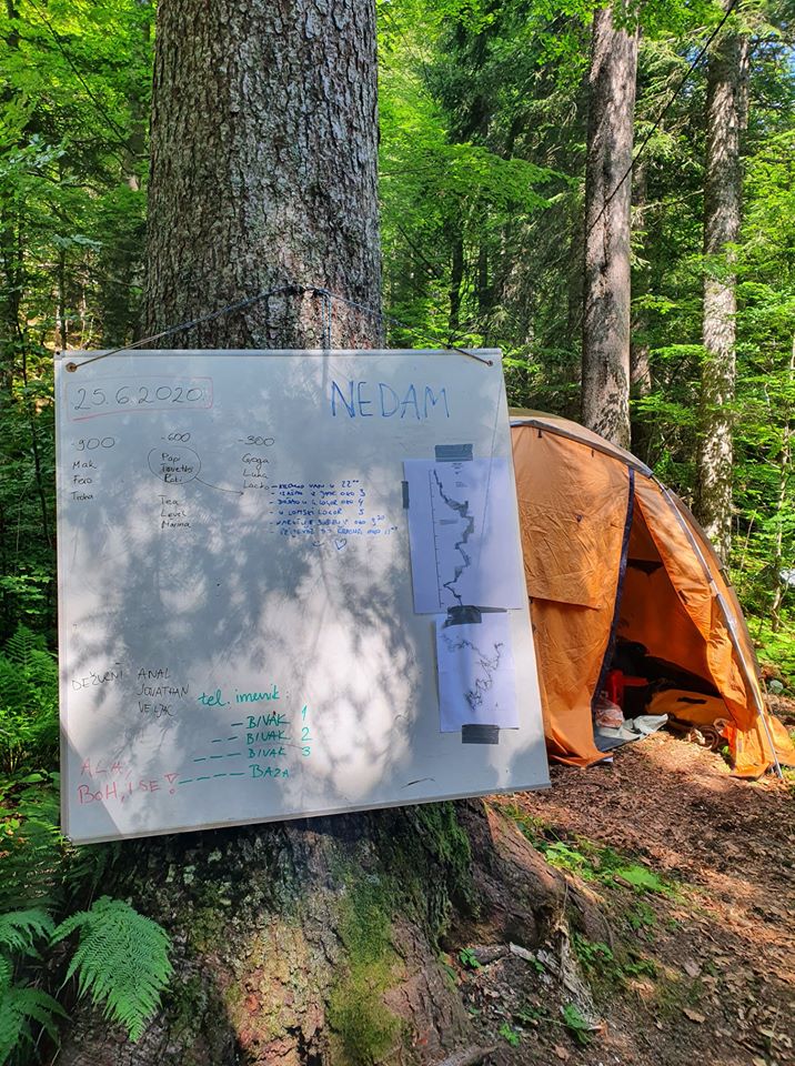 Bilo je neophodno pronaći novo „sigurno mjesto“ za odmor tijekom istraživanja te kao sklonište u slučaju naglih ljetnih oborina koje su na Sjevernom Velebitu izrazite i opasne zbog jake vertikalne morfologije. Scena koju su istraživači zatekli kad su pronašli uništen bivak i mokre vreće za spavanje nije bila ni malo utješna, a što je opisano u članku Tee Selaković od 14. lipnja 2020.g. na linku https://sovelebit.wordpress.com/…/nedam-predakcija-predakc…/.