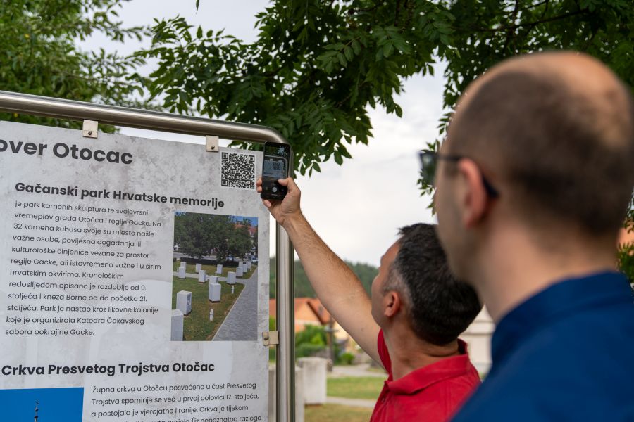 Također, kako bi se svi gosti Otočca mogli informirati o ovim novim funkcionalnostima aplikacije, postavljena je nova info tabla ispred Gačanskog parka hrvatske memorije. Park su danas prigodno posjetili i djelatnici Turističke zajednice Grada Otočca i izvođača,predstavnici tvrtke XRPG Reality.