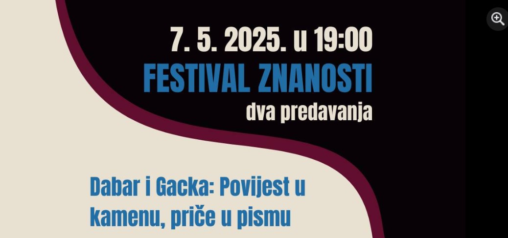 OTOČAC – Gacko pučko otvoreno učilište Otočac i ove se godine uključilo u Festival znanosti u sklopu kojeg će biti održana dva polusatna predavanja na temu arheologije i glagoljaške baštine Gacke – 7. svibnja 2025. u 19 sati u maloj dvorani na katu Učilišta.