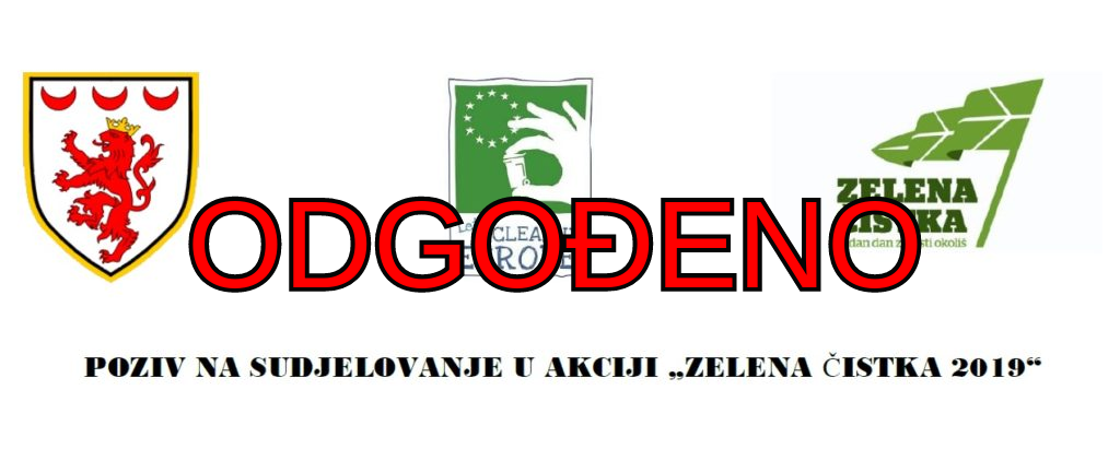 OTOČAC – S obzirom na najavljene loše vremenske uvjete na planirani datum održavanja Akcije „Zelena čistka 2019.“, odnosno petak, (12. 04. 2019.) Grad Otočac odgađa Akciju. Novi datum održavanja Akcije je utorak (16. travnja 2019.)