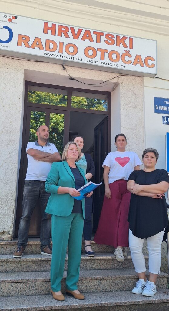 OTOČAC – Danas u podne ispred zgrade Hrvatskog radija Otočac održana je konferencija za medije djelatnika radija koju je vodila direktorica Ruža Orešković.