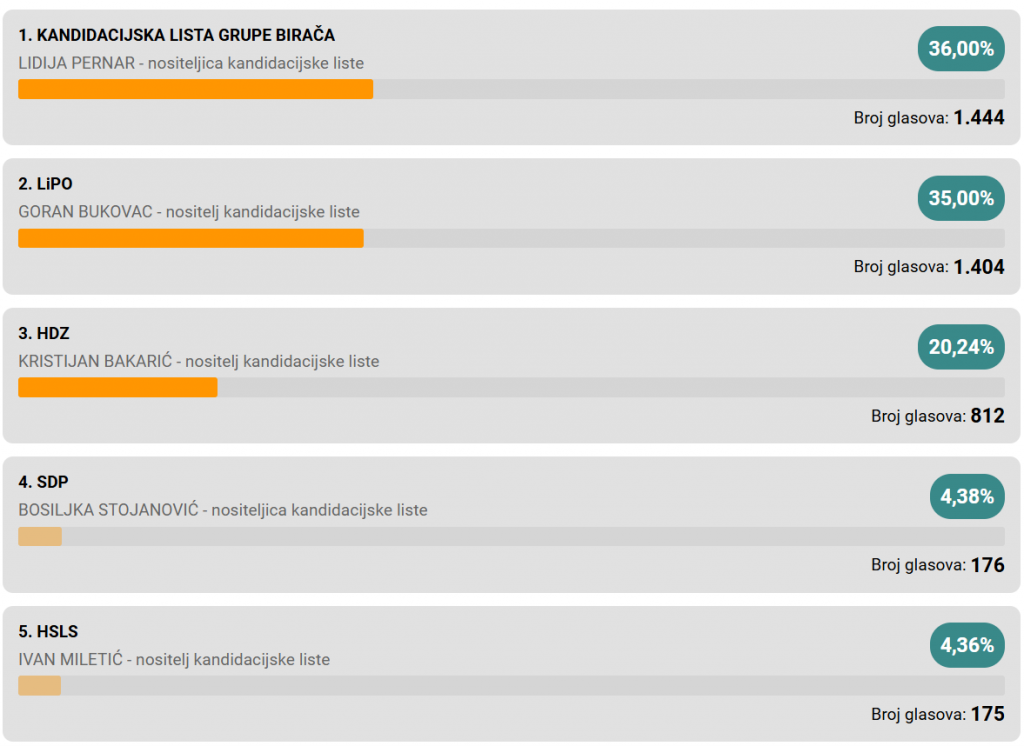 U izboru za Gradsko vijeće Grada Otočca rezultati su slijedeći: