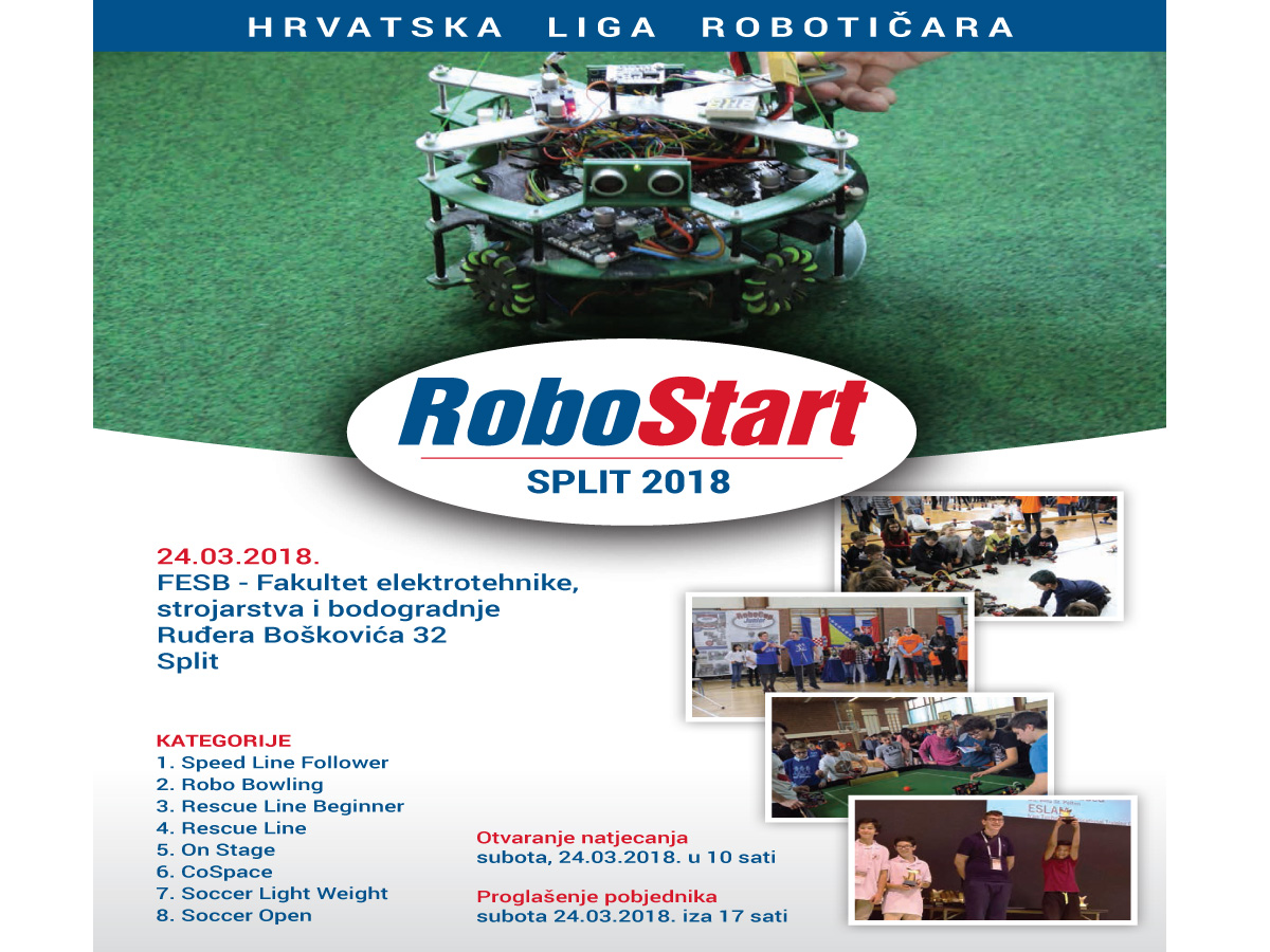 SPLIT – Na Fakultetu elektrotehnike strojarstva i brodogradnje u Splitu, a u organizaciji Hrvatskog robotičkog saveza, 24. ožujka 2018. održati će se natjecanje “RoboStart” Split 2018 u osam različitih kategorija. Sedma je to sezona Hrvatske lige robotičara, jednog od najvećih robotičkih natjecanja u Hrvatskoj. Otočki robotičari nastupiti će sa tri ekipe i to: Robo Otočac, Gacka Robotics i Lika Robotics, a natjecati će se u kategoriji Rescue Line i Rescue Line Beginner.