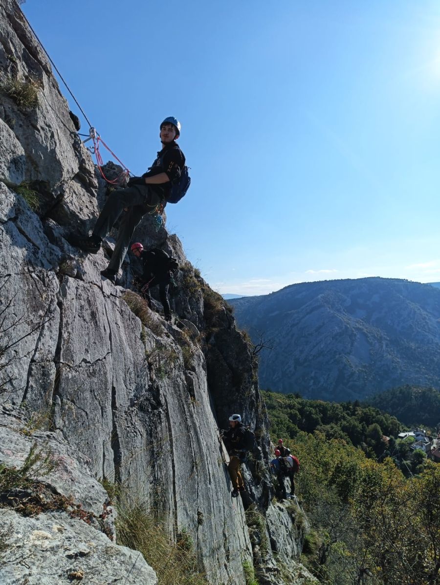 Grupa je uspješno prošla via ferratu “Bruno Biondi” u blizini Trsta, gdje su polaznici imali priliku primijeniti naučeno u stvarnim uvjetima. Penjanje po ovoj atraktivnoj ferrati pružilo je i izazov i užitak, uz predivne poglede na Jadransko more i okolni krški krajolik.