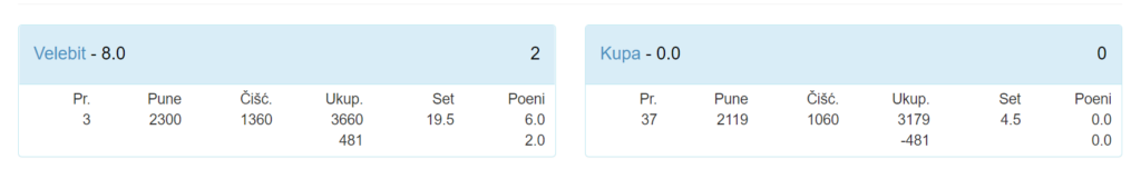 OTOČAC – Jučer, 13. ožujka s početkom u 15:00 sati u otočkog kuglani odigrano je 18. kolo 1. HKLJ skupine B između domaćina KK Velebit i KK Kupa. Pobjedu je odnio Velebit konačnim rezultatom 8:0 (u čunjevima 3660:3179). Tako je Velebit postavio i novi rekord kuglane od 3660 oborenih čunjeva. Čestitamo.