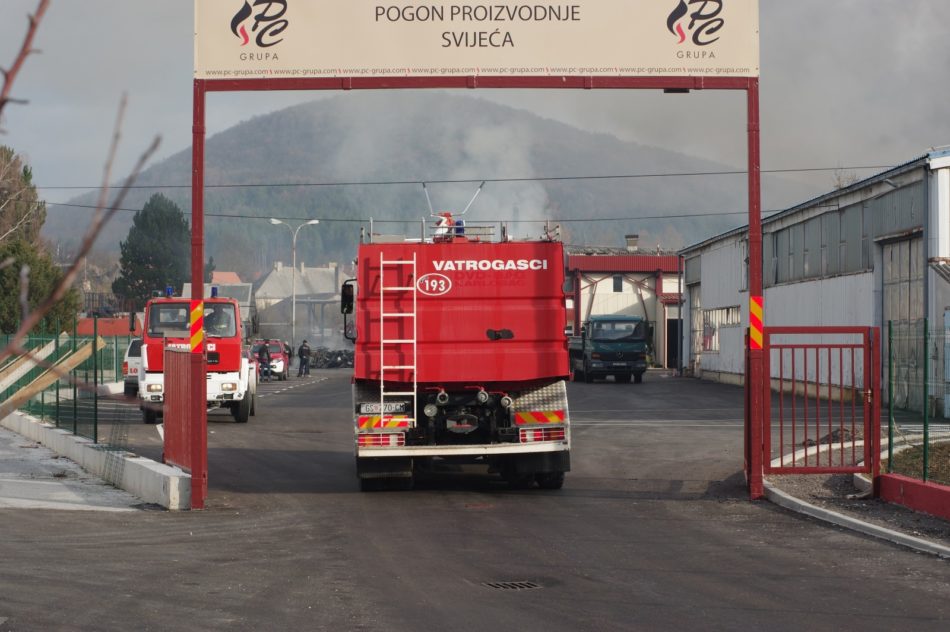 OTOČAC – Jutros je u pogonima bivše tvornice Cosmochemija izbio požar koji do ovoga trenutka (10 sati) još nije ugašen. Inače, proizvodne hale Cosmochemije koristi samoborska tvrtka PC grupa, specijalizirana za proizvodnju svijeća i lampiona. Pogon PC grupe u Otočcu zapošljava oko 40-ak djelatnika što je svakako i najveća tragedija ovoga požara jer pogon neće raditi duže vrijeme. Naknadnim očevidom policije vjerovatno će se utvrditi uzrok požara.