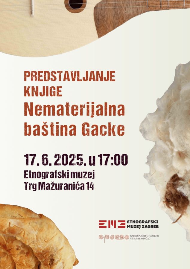 Knjiga „Nematerijalna baština Gacke“, nedavno objavljena u izdanju Gackog pučkog otvorenog učilišta Otočac, biti će predstavljena 17. 6. 2025. u 17 sati u Etnografskom muzeju u Zagrebu. Ova knjiga utemeljena je na prethodnim istraživanjima i recentnim terenskim obilascima i snimkama, a prezentira ukupno 13 elemenata nematerijalne kulture karakterističnih za prostor Gacke, uključujući nematerijalna kulturna dobra upisana u Registar kulturnih dobara Republike Hrvatske, ali i elemente koji imaju lokalni značaj.