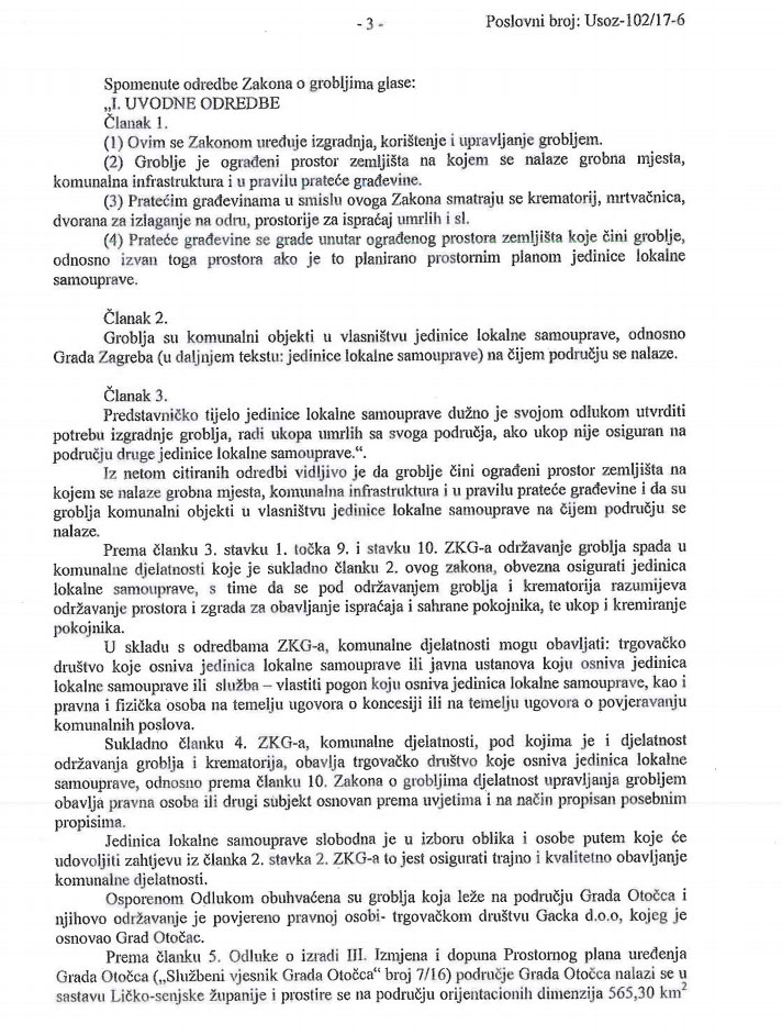 Visoki upravni sud presudio je da je zahtjev Ministarstva graditeljstva i prostornog uređenja pravno neutemeljen, odnosno da je Odluka o upravljanju grobljima koju je izglasalo Gradsko vijeće 2016. godine zakonita.