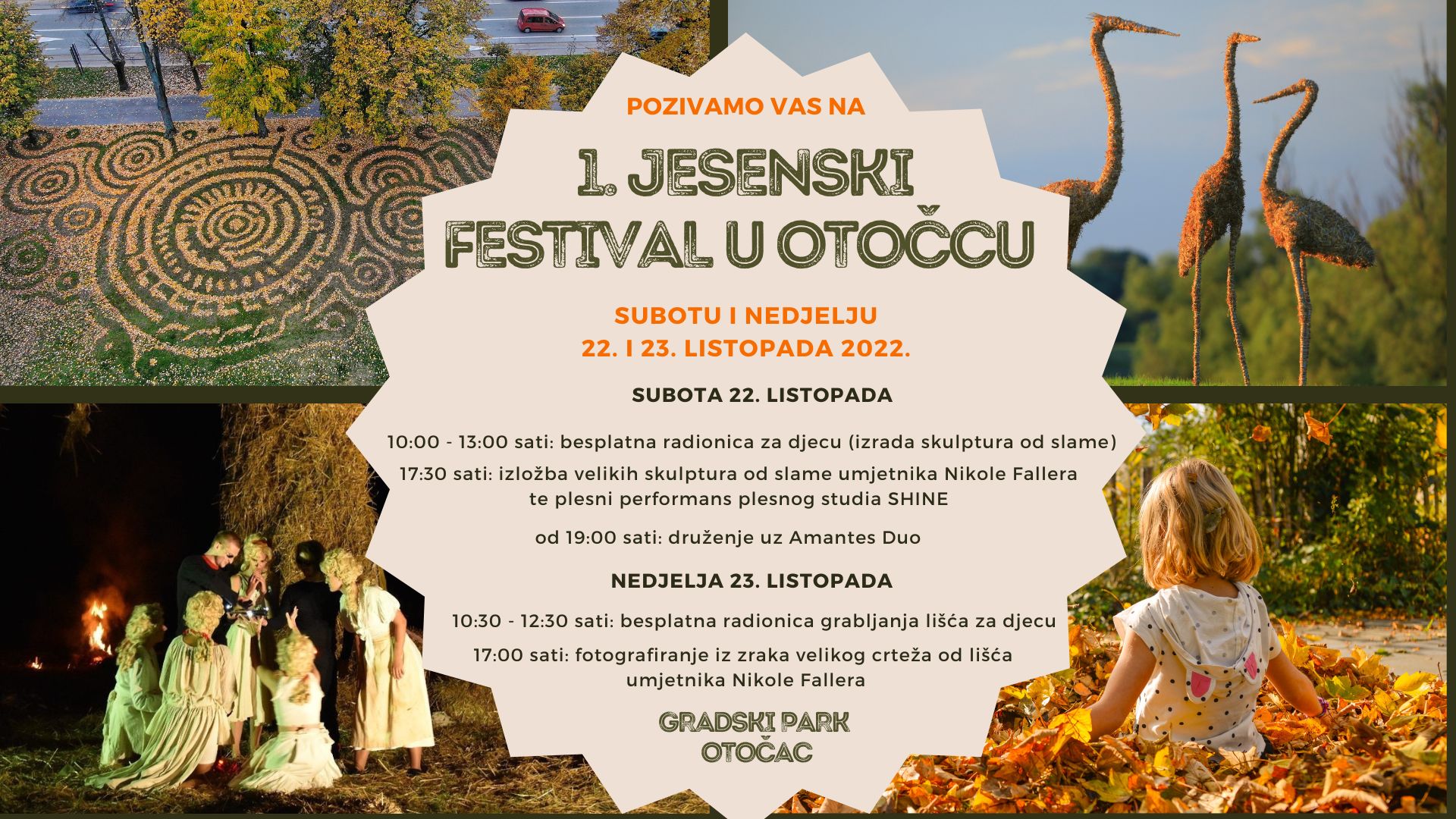 OTOČAC – Dana 22. i 23. listopada u gradskom parku u Otočcu održat će se 1. Jesenski festival u organizaciji Turističke zajednice Grada Otočca. Jesen je svojim šarenilom često inspiracija brojnim umjetnicima, a da se od otpalog lišća mogu stvoriti prava umjetnička djela dokaz je Osječanin i akademski kipar Nikola Faller poznat po radu svoje udruge „Slama Land Art“ u kojoj je umjetnički voditelj i s kojom gostuje po cijeloj Hrvatskoj i izvan nje. Materijali s kojima ovaj umjetnik najviše voli raditi i stvarati su slama, pijesak i lišće jer, kako vjeruje, „potrebno se vratiti zemlji“.