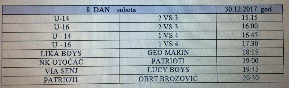 Objavljen je i raspored utakmica za sutra, 30. prosinca (subota):