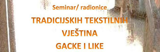 OTOČAC – Gacko pučko otvoreno učilište Otočac u suradnji s Posudionicom i radionicom narodnih nošnji iz Zagreba poziva vas na Seminar/radionicu tradicijskih tekstilnih vještina Gacke i Like. Radionica će se održati od 02. do 04. veljače 2018., u Gackom pučkom otvorenom učilištu Otočac u prostoru male dvorane Učilišta.