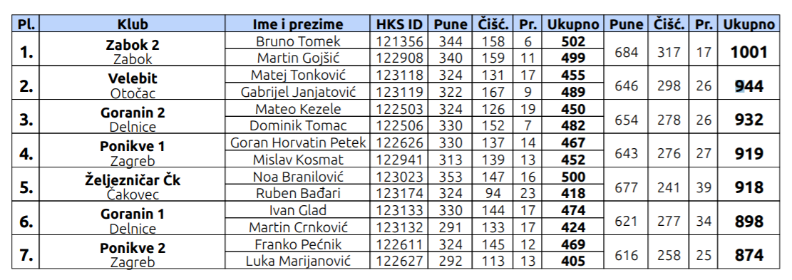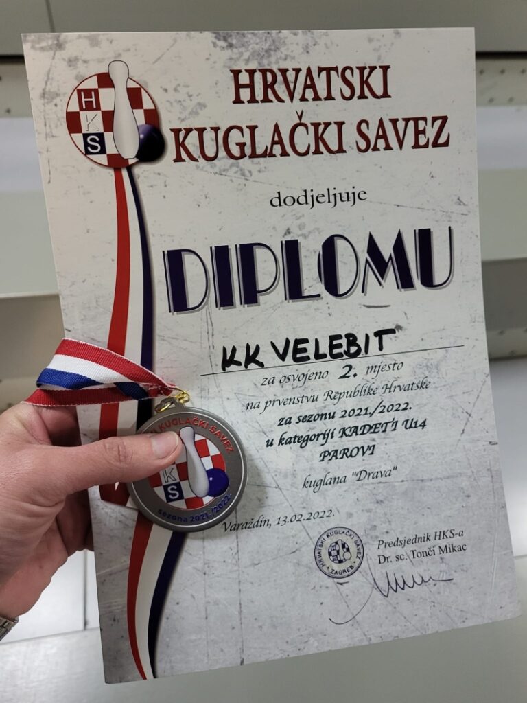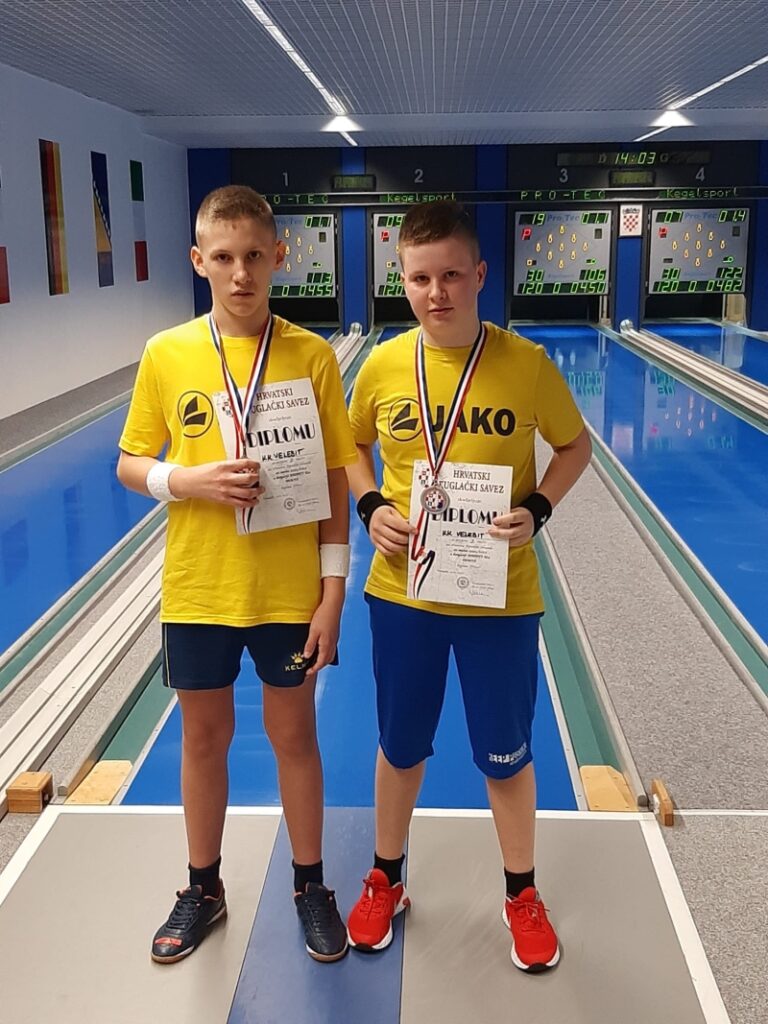 VARAŽDIN – Još lijepih kuglačkih vijesti dolazi nam ovaj put iz Varaždina. Danas je u kuglani Drava u Varaždinu održano Prvenstvo parova RH za sezonu 2021./2022. – KADETI U14, a na kojem su nastupili i kuglači KK Velebit. U ukupnom poretku natjecanja u parovima kuglači KK Velebit pozicionirali su se na izvrsno 2. mjesto i to Matej Tonković i Gabrijel Janjatović s ukupno 944 osvojena boda. Prvo mjesto u ukupnom poretku osvojili su kuglači KK Zabok 2 iz Zaboka s ukupno 1001 osvojen bod. Čestitamo!