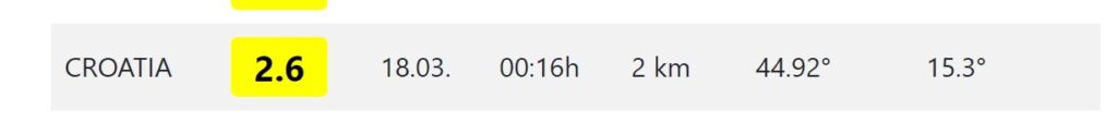 OTOČAC – Sinoć u 00:16 sati zabilježen je slab potres u blizini Otočca. Potres je bio magnitude 2.6 prema Richteru i to na dubini od 2 km. Osjetio se je na širem području Otočca.