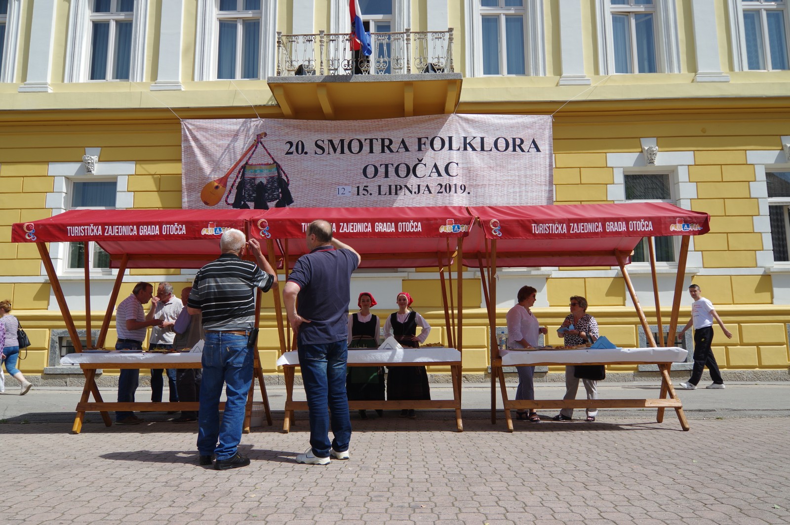 Prezentacijom i degustacijom domaćih jela, pića i slastica na Trgu dr. Dražena Bobinca započela je ovogodišnja jubilarna 20. smotra folklora. Mnogobrojni građani isprobali su tradicionalna lička jela i pića poput domaće rakije, sira i pršuta kao i domaće slastice.