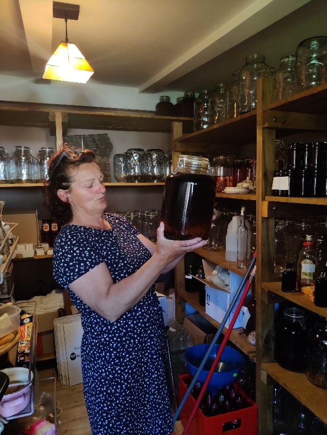 Sljedeće oduševljenje bilo je gospodarstvo gđe Helene Bogdanić koje je bilo posebno zanimljivo studentima ekološke poljoprivrede koji su s gđom Bogdanić usporedili poneka teorijska znanja s praktičnim iskustvom koje je dragocjeno upravo za studente koje uskoro čeka završetak fakulteta i početak primjene znanja u praksi. Gđa Helena ugostila je studente i profesorice svojim sokovima od bazge i kadulje, provela ih po gospodarstvu, uz predivne nasade malina, brojno aromatično bilje i ukrasne humke prepune rijetkih biljaka sve do Gacke i mjesta za odmor uz rijeku – buduće klupe i sjenice za uživanje. Helena je prepuna ideja i neiscrpnog rada i studenti su joj zaželjeli sve najbolje, uz obostranu nadu da će ponekoga od njih primiti na studentsku praksu.