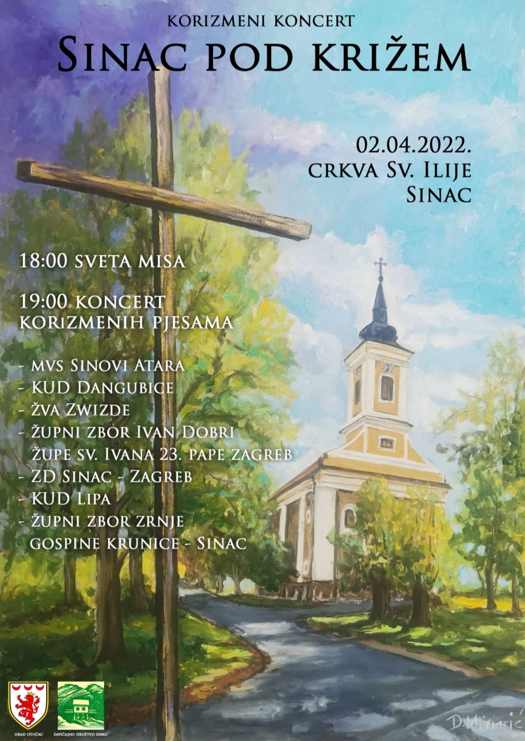 OTOČAC / SINAC – Zavičajno društvo Sinac poziva sve ljubitelje glazbe i ugodnog druženja na tradicionalni korizmeni koncert u Sincu “Sinac pod križem”, a koji će se održati 02. travnja 2022. godine u crkvi Sv. Ilije u Sincu. Nakon sv. mise ( u 18:00 sati), koncert korizmenih pjesama započeti će u 19:00 sati.