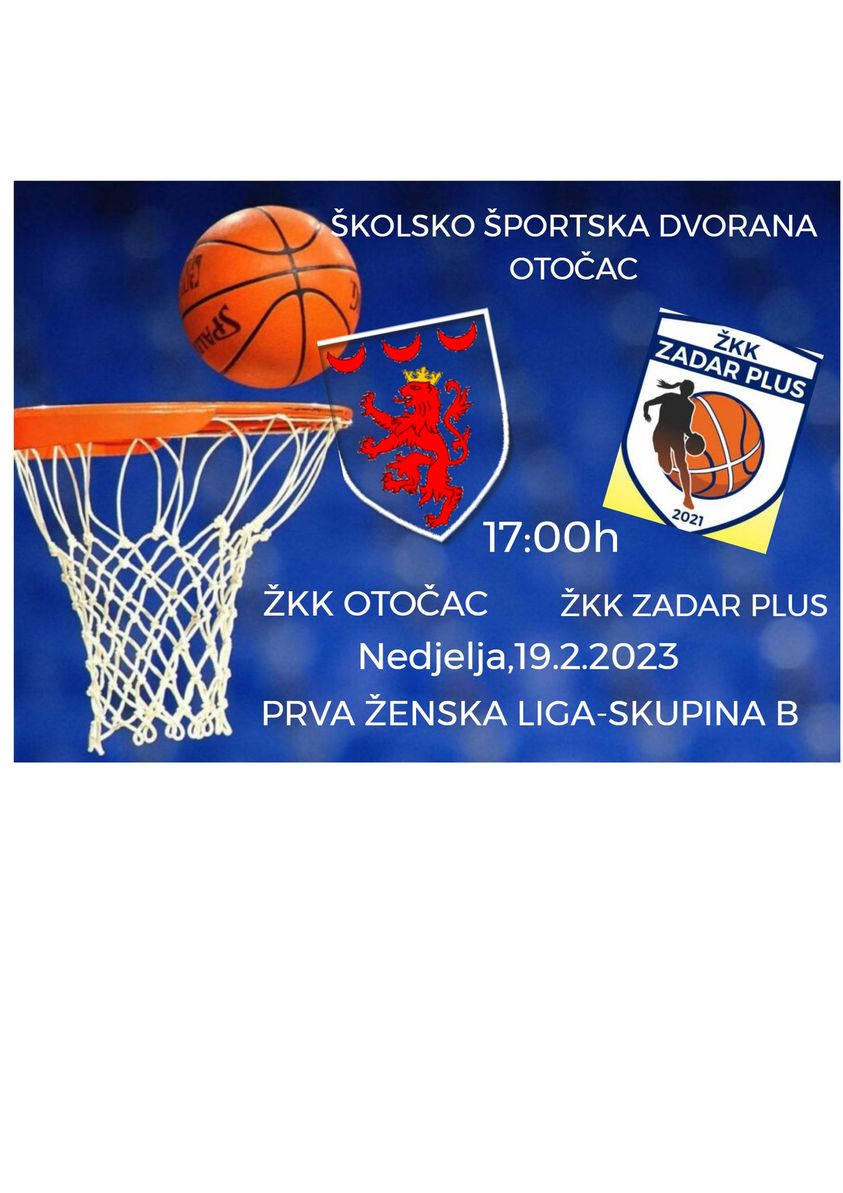 OTOČAC – U nedjelju, 19. 2.2023., u sportskoj dvorani Srednje škole Otočac odigrati će se posljednja utakmica sezone 1. ženske lige – skupine B i to između domaćina ŽKK Otočac i ekipe Žkk Zadar Plus iz Zadra. Utakmica će započeti u 17:00 sati.