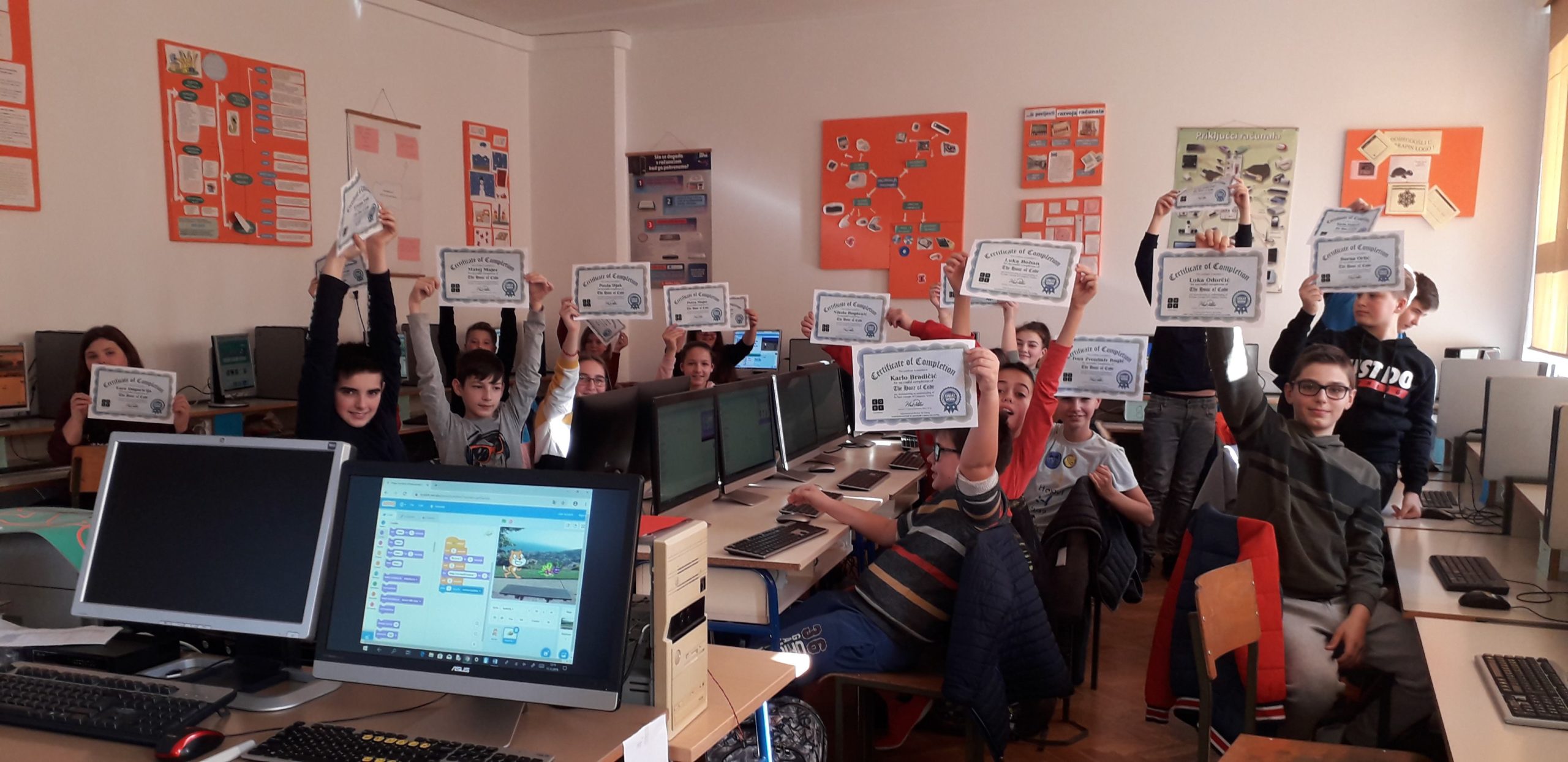 OTOČAC – Osnovna škola Zrinskih i Frankopana Otočac i ove školske godine uključila se u provedbu Sata kodiranja. Učenici 6.a i 6.b razrednog odjela, zajedno s učiteljicom Valentinom Pajdaković, programirali su u Scratch-u. Sat kodiranja obilježili smo u sklopu redovnih nastavnih aktivnosti te u skladu s odgojno-obrazovnim ishodima predviđenim Kurikulumom informatike. Učenici su upoznali sučelje programskog jezika Scratch te istražili osnovne mogućnosti alata.