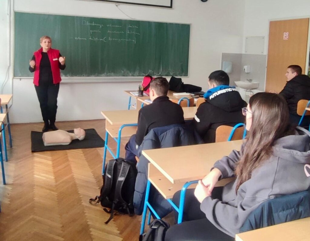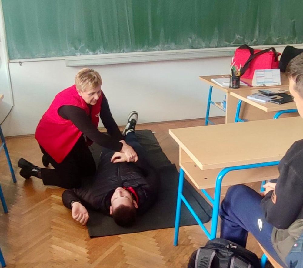OTOČAC – Protekli tjedan Gradsko društvo Crvenog križa Otočac održalo je predavanje o pružanju prve pomoći učenicima prvog razreda Srednje škole Otočac zanimanja šumarski tehničar. Predavanje je održala ravnateljica Dragica Cvitković, a u sklopu modula Zaštita na radu u šumarstvu. Učenici su imali prilike naučiti ključne korake u pružanju prve pomoći osobi bez svijesti, kako tretirati opekline hladnom vodom, kako pravilno zaustaviti krvarenje iz nosa te postupak u slučaju prignječenja. Sve to učenici su mogli praktično isprobati i na pokaznoj lutki.