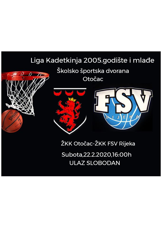 OTOČAC – U subotu, 22. veljače s početkom u 16:00 sati u dvorani Srednje škole Otočac odigrati će se košarkaška utakmica kadetkinja godišta 2005. i mlađe i to između ŽKK Otočac i ŽKK FSV Rijeka. Ulaz je slobodan.