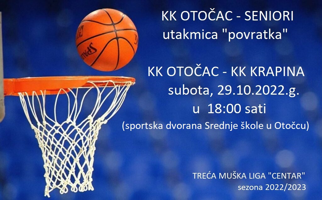 OTOČAC – U subotu, 29. listopada u sportskoj dvorani Srednje škole Otočac odigrati će se seniorska košarkaška utakmica 3. muške lige “Centar” između domaćina KK Otočac i gostiju iz KK Krapina. Utakmica će započeti u 18:00 sati.