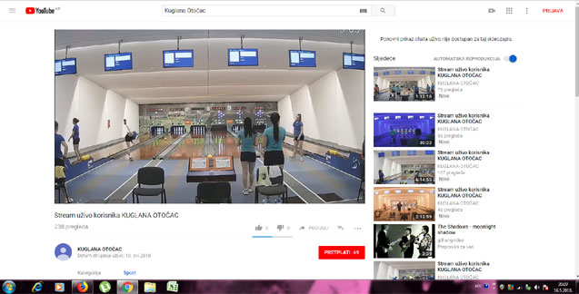 OTOČAC – Prateći suvremene tehnološke trendove, otočka kuglana nudi prijenos utakmica uživo putem internet video streaming tehnologije. Video streaming označuje prijenos multimedijskih sadržaja putem interneta, a dva su osnovna tipa ove usluge: live streaming (prijenos uživo) te streaming on demand (prijenos na zahtjev).