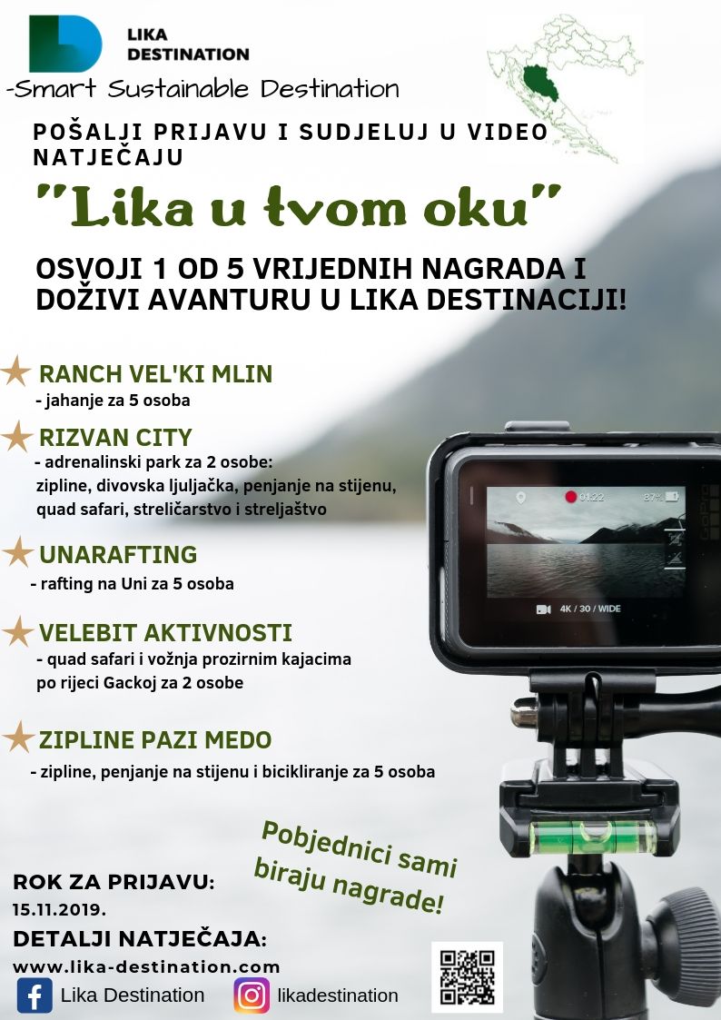Klaster Lika Destination poziva sve kreativce, amatere, profesionalce i zaljubljenike u Liku iz cijele Hrvatske da se prijave na natječaj za najbolji video destinacije Lika pod nazivom „Lika u tvom oku“.