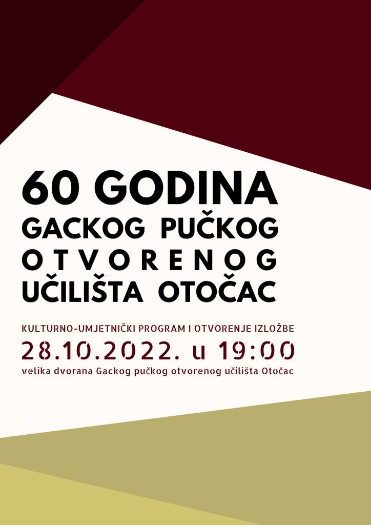OTOČAC – Gacko pučko otvoreno učilište Otočac ustanova je za kulturu i obrazovanje te baštinik povijesti Otočca i Gacke. Osnovano je 12. 10. 1962. pod nazivom Narodno sveučilište Marko Orešković, a sadašnji naziv nosi od 1997. godine. U 2022. godini Gacko pučko otvoreno učilište obilježava 60. obljetnicu rada i postojanja ustanove povodom koje će se održati kulturno-umjetnički program te otvorenje izložbe o povijesti ustanove. Obilježavanje će se održati u petak 28. 10. u 19 sati u velikoj dvorani.