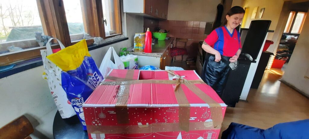 Uz pakete hrane svakoj obitelji je uručena i čestitka s 700,00 kuna u gotovini. Akciju je koordinirala i vodila u Otočcu Jelena Benčić a posredovala je HU Dobra Volja iz Zagreba koja je donatore prošle godine usmjerila u Otočac i slučajan dolazak postao je tradicija.